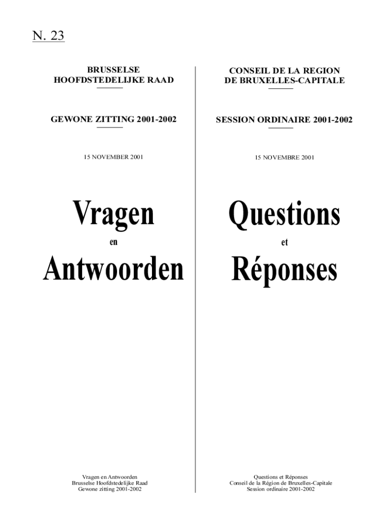 N. 23 BRUSSELS HOOFDSTEDELIJKE RAADCONSEIL DE LA REGION DE BRUXELLESCAPITALEGEWONE HITTING 20012002SESSION ORDINARY 2001200215 NOVEMBER 200115 NOVEMBER 2001VragenQuestionsAntwoordenRponsesenVragen