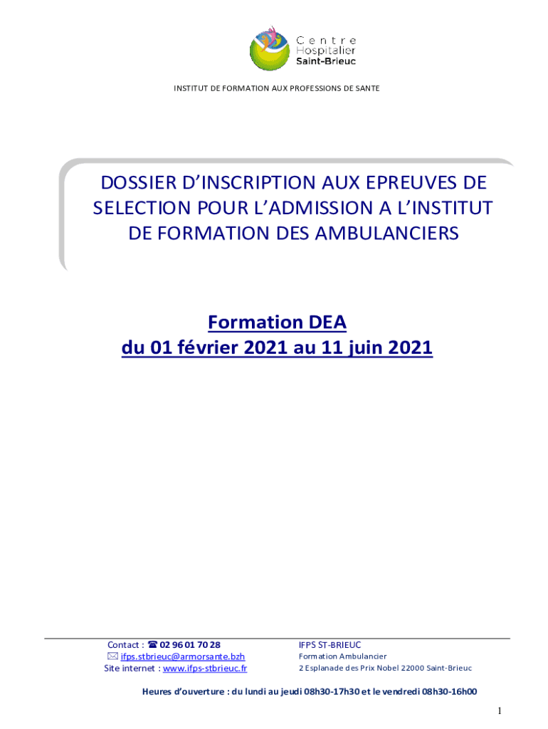 INSTITUTE DE FORMATION AUX PROFESSIONS DE SANTEDOSSIER INSCRIPTION AUX EXPRESSES DE SELECTION POUR ADMISSION A INSTITUTE DE FORMATION DES AMBULANCIERSFormation DEA Du 01 frier 2021 au 11 join 2021Contact