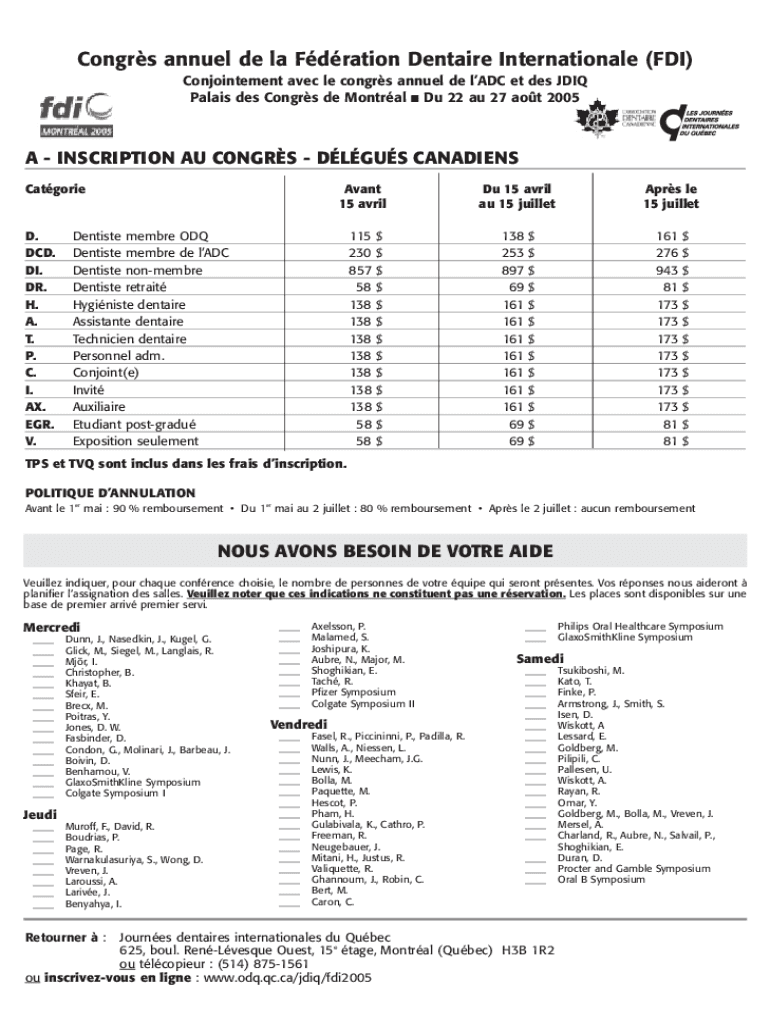 Congas annual DE la Formation Entire Internationale (FDI) Confinement Alec LE congas annual de Lady et DES JD IQ Calais DES Congas de Montral Du 22 au 27 AOT 2005A INSCRIPTION AU CONGAS DLG US CANADIANS