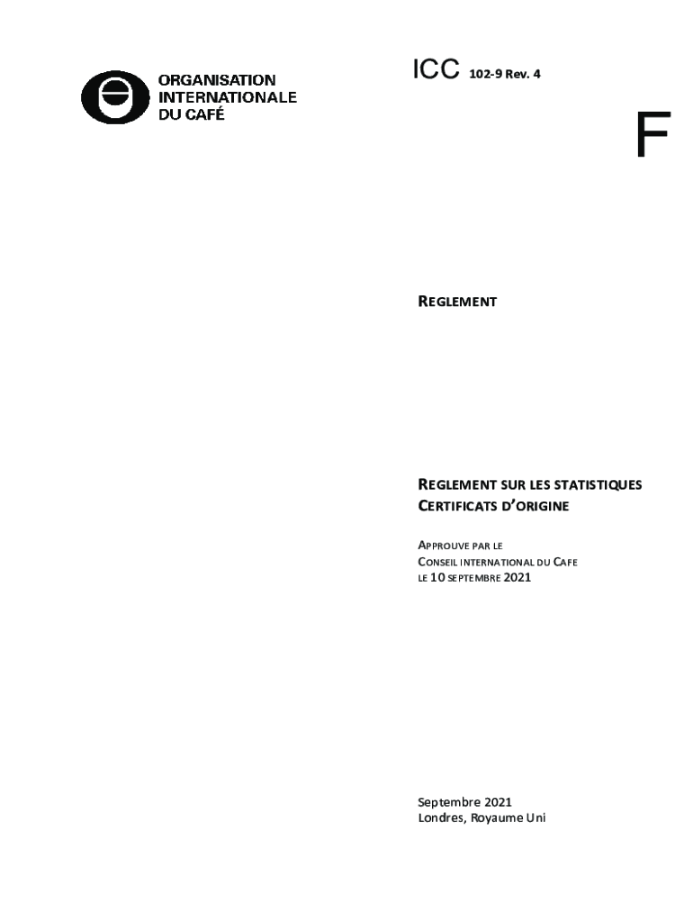 ICC1029 Rev. 4F REGLEMENTREGLEMENT SUR LES STATISTICS CERTIFICATE ORIGIN APPROVE PAR LE CONSENT INTERNATIONAL DU Café LE 10 SEPTEMBER 2021Septembre 2021 Wonders, Royale UniAVANTPROPOSLe Element SUR