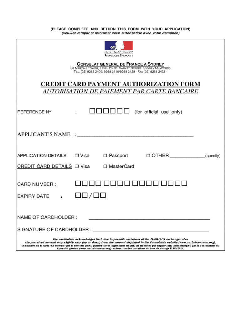 Get the free au.ambafrance.orgIMGpdfCREDIT CARD PAYMENT AUTHORIZATION FORM AUTORISATION DE ... - ...