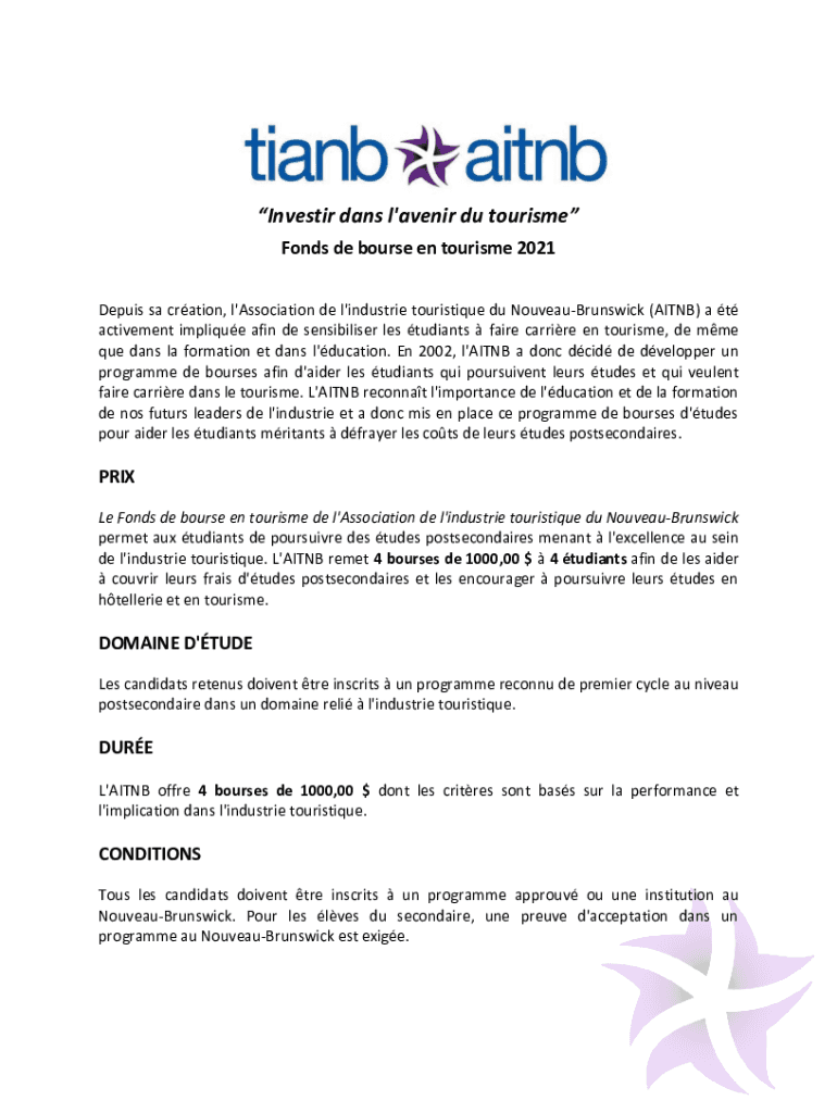 Investor days l\'avenge Du tourism Finds DE course en tourism 2021 Deputy sac ration, l\'Association de l\'industries touristic Du NouveauBrunswick (AI TNB) a t achievement appliquéing akin DE sensibilize