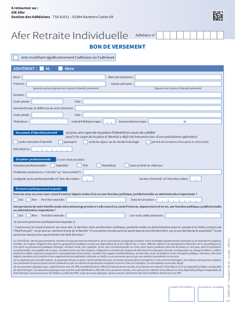 A returner AU : GIE AFER Section DES Adhesions TSA 81011 92894 Parterre CEDEX 09Afer Retrieve IndividuelleAdhsion non DE VEHEMENT Acte modified significativement adhesion de ladhrentADHRENT :M. Venom