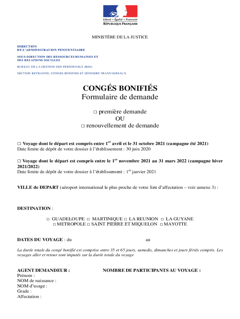 MINISTRY DE LA JUSTICE DIRECTION DEL ADMINISTRATION PENITENTIARY MISDIRECTION DES RESOURCES HUMANS ET DES RELATIONS SOCIALS BUREAU DE LA SECTION DES PERSONNEL (RH4) SECTION RETRACTED, CONGÉS MODIFIES