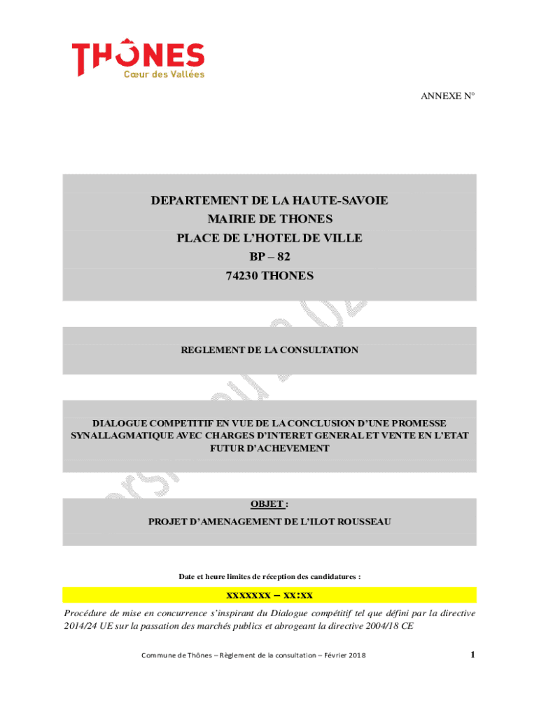 ANNEXED DEPARTMENT DE LA Haute-Savoie MARIE DET HONES PLACE DEL HOTEL DE VILLA BP 82 74230 THONESREGLEMENT DE LA CONSULTATIONDIALOGUE COMPETITION EN DUE DE LA CONCLUSION DUNE PROCESS SYNALLAGMATIQUE