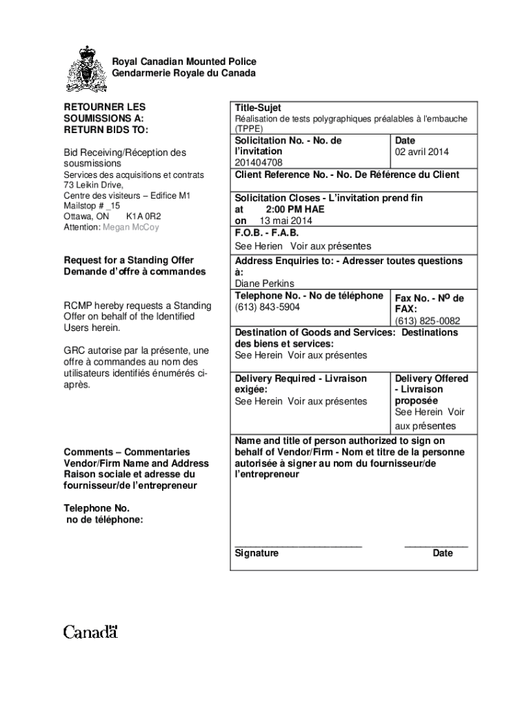 Get the free buyandsell.gc.cacdspublicRoyal Canadian Mounted Police Gendarmerie royale du Canada ...
