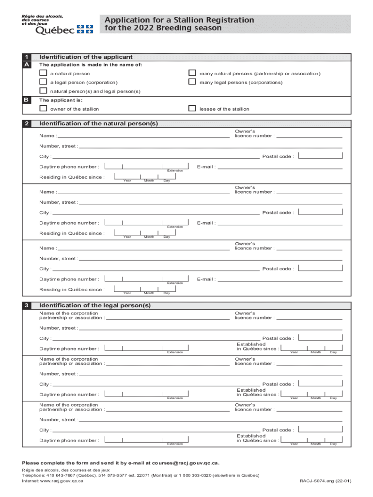 Application for a Stallion Registration for the 2022 Breeding season1AIdentification of the applicant The application is made in the name of: a natural person many natural persons (partnership or