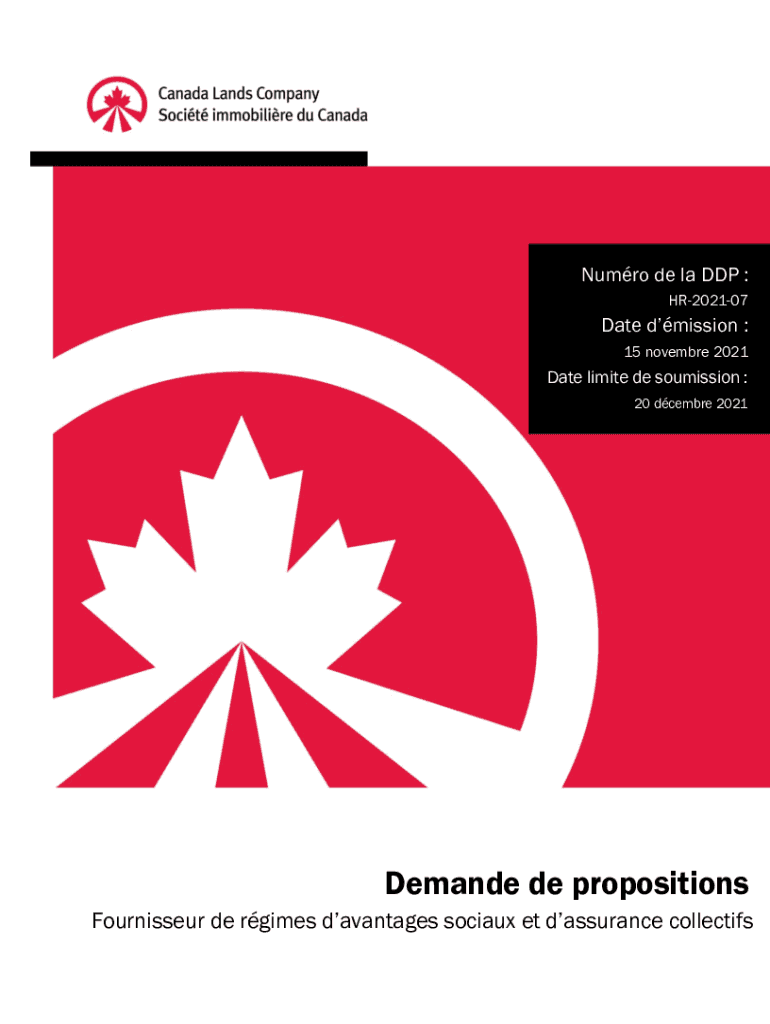 Humor de la GDP : HR202107Date mission : 15 November 2021Date limited DE sou mission : 20 December 2021Demande de propositions Fournier de regimes advantages social ET assurance collectifsTable DES