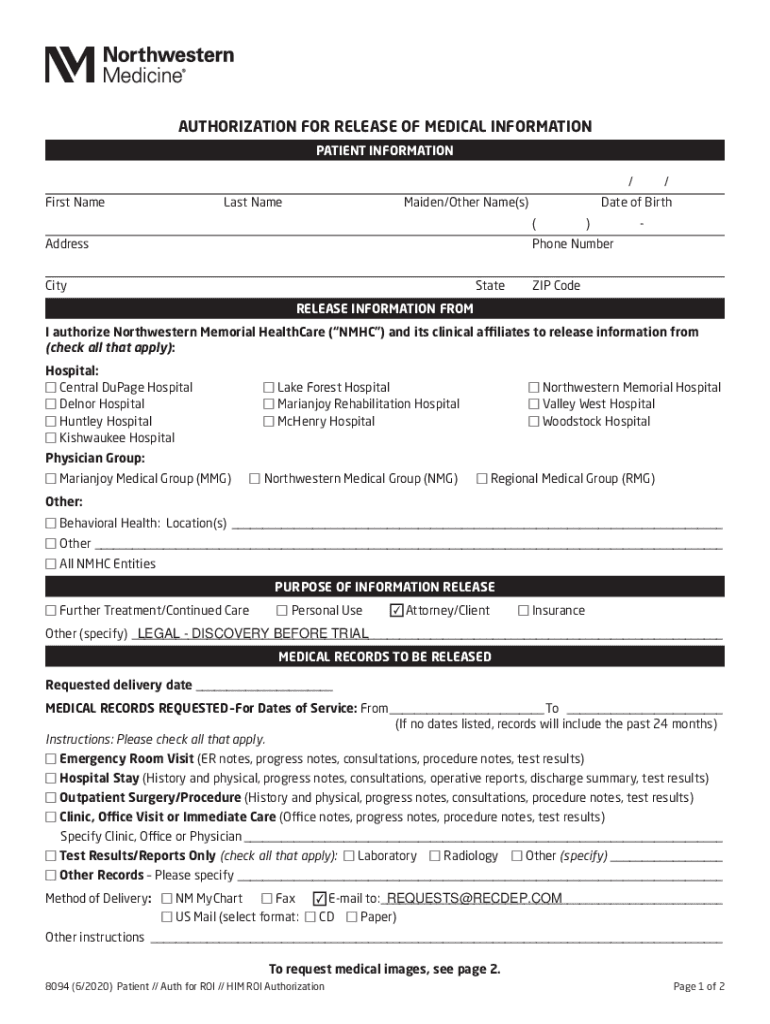 How to fill out northwestern-medicine-authorization-for-release-of-informationpdf