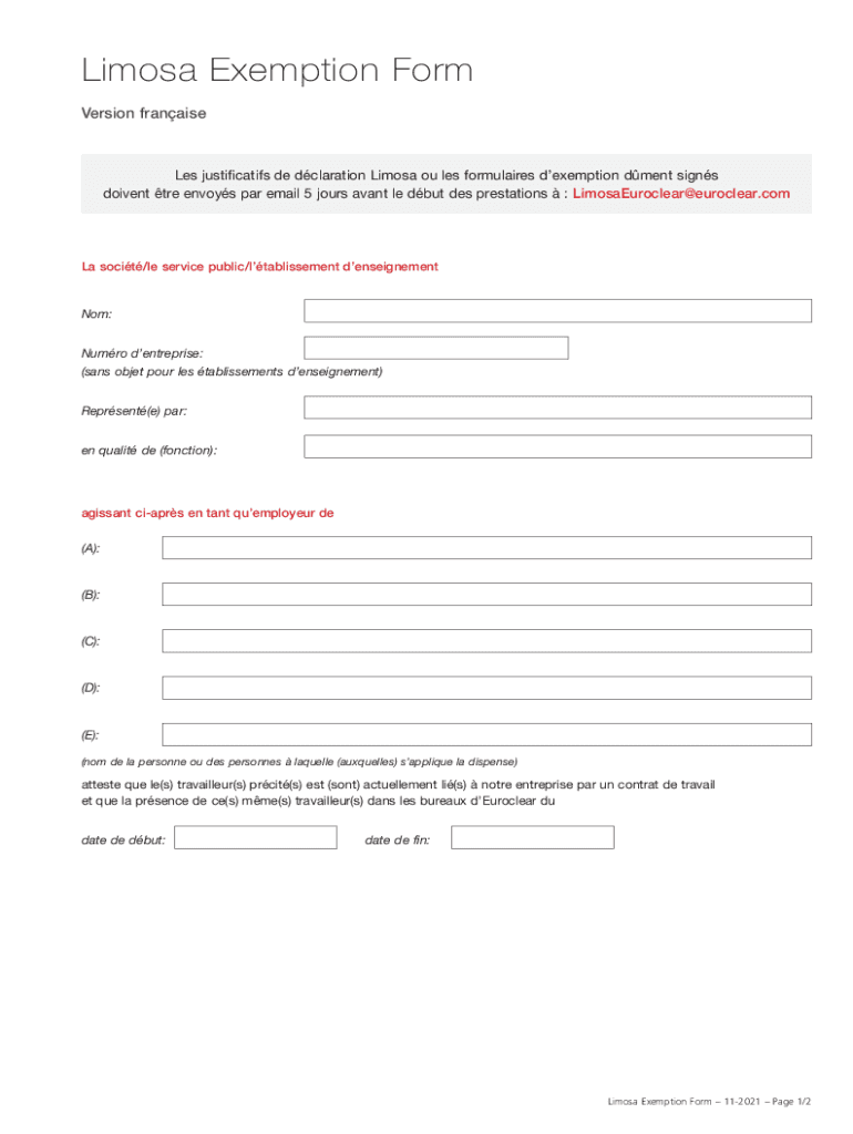 Mimosa Exemption Form Version franchisees justification DE declaration Mimosa of LES formularies exemption dent signs driven TRE envoys par email 5 hours savant led but DES prestations : LimosaEuroclear@euroclear.comLa