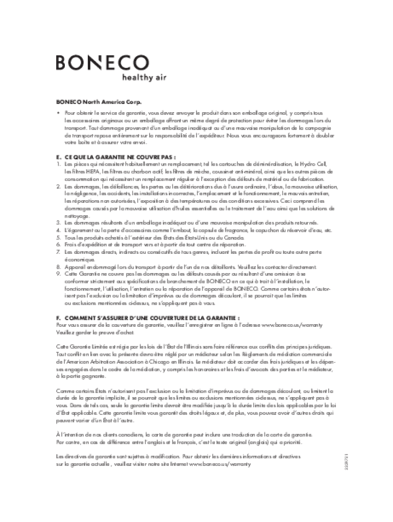 Get the free BONECO North America Corp. E. CE QUE LA GARANTIE NE COUVRE PAS