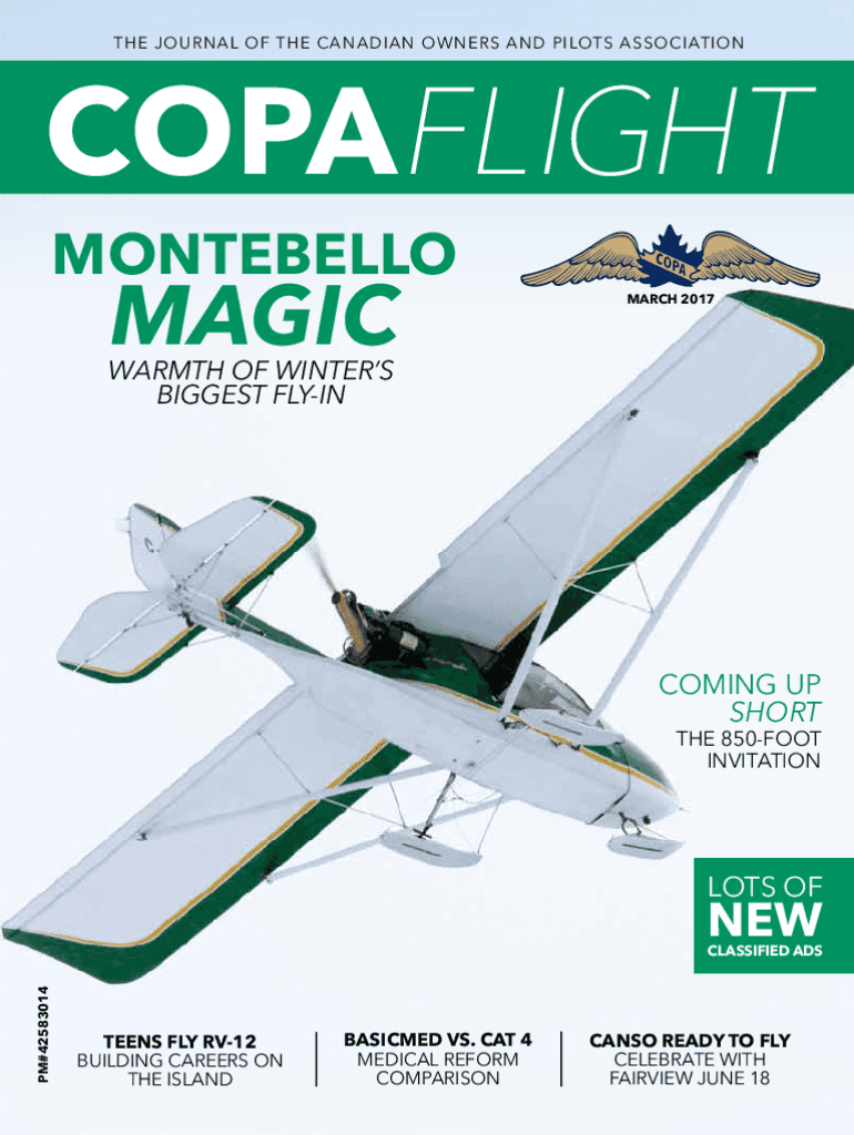 The journal of the Canadian Owners and Pilots AssociationCOPAFlight MontebelloMagicmarch 2017Warmth of Winters Biggest Incoming Up Shortage 850Foot Invitation lots of new PM#42583014classified eighteens