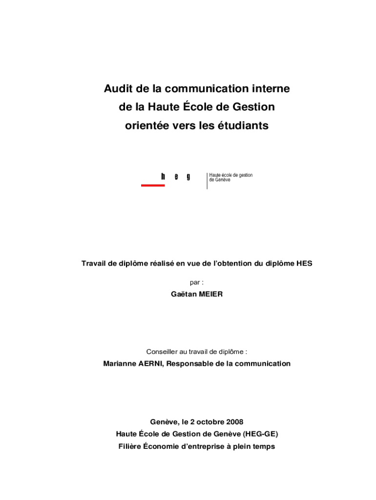 Get the free Audit de la communication interne de la Haute cole de ... - doc rero