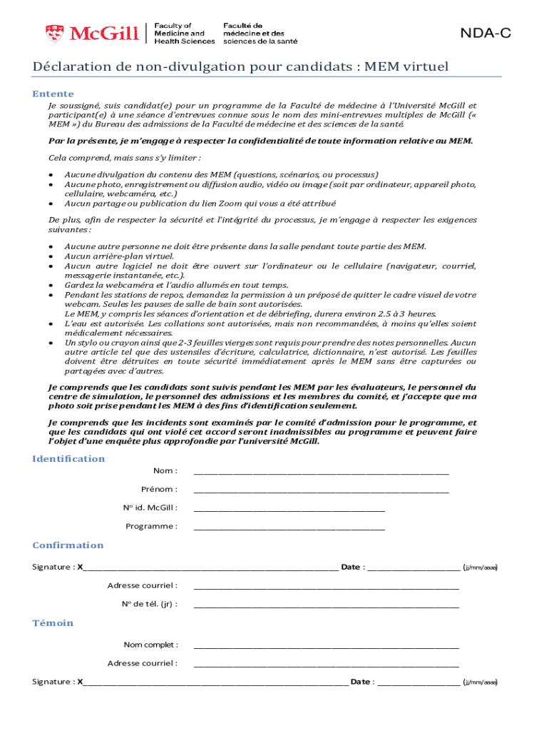 DAC Declaration DE divulgation pour candidate : ME virtual Entente sous sign, sews candidate(e) pour UN program DE la Faculty DE decline university McGill et participant(e) one since dent revues Connie