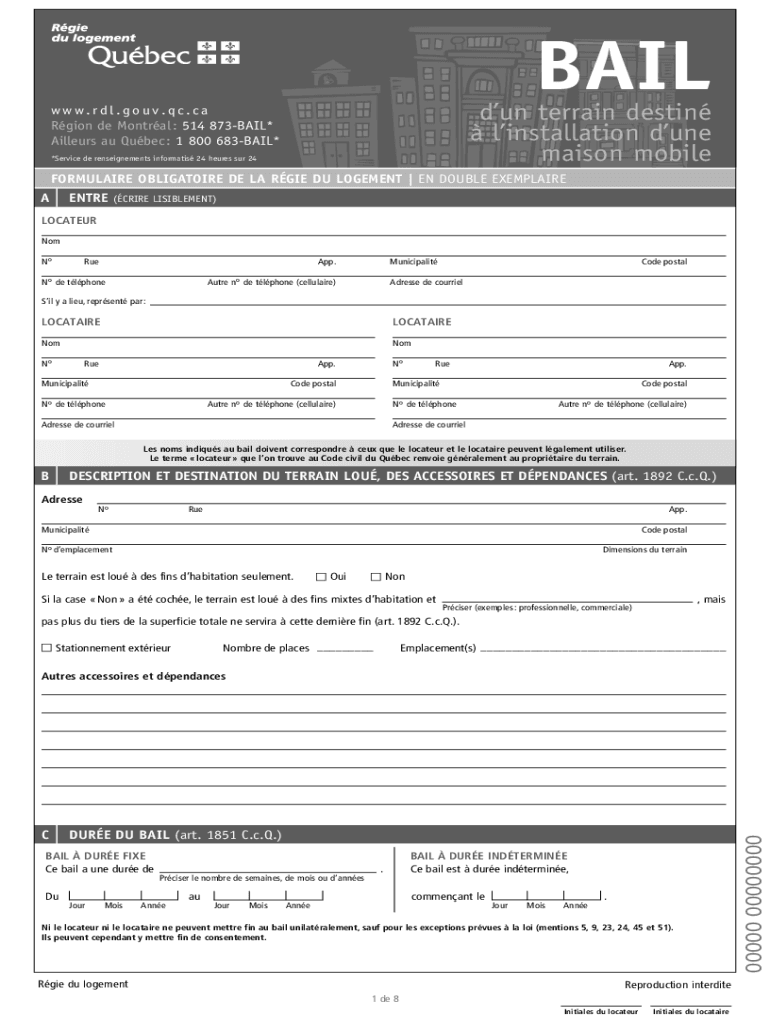 BAIL dun terrain destiny installation dune Madison mobile.DL.gov.QC.ca Region de Montral : 514 873BAIL* Killers AU Quebec : 1 800 683BAIL* *Service de restatements informatics 24 here SUR 24FORMULAIRE