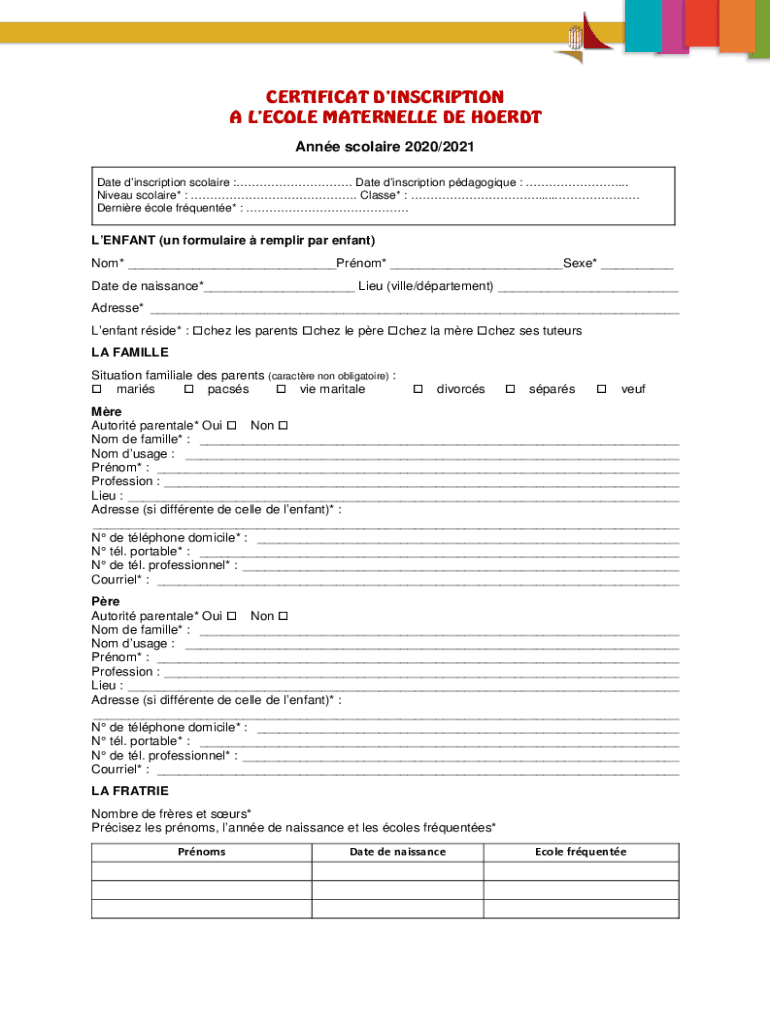 CERTIFICATE INSCRIPTION A BECOME MATERNALLY DE HOE RDT Anne Claire 2020/2021Dated inscriptionnClairee :Dated inscriptionnpedagoguee : ... NiveauClairee×. Class* : ...... DesireeColeefrequente* :ENFANT