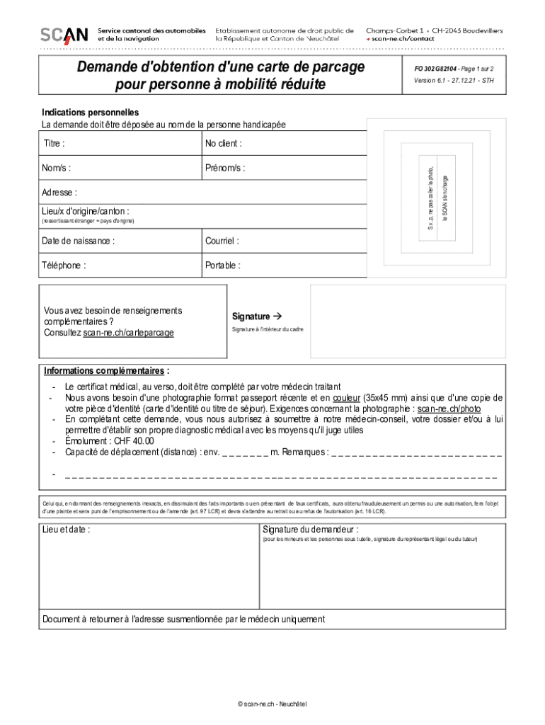 Obtenir le gratuit Demande d'obtention d'une carte de parcage pour personnemobilit rduite. Permis...