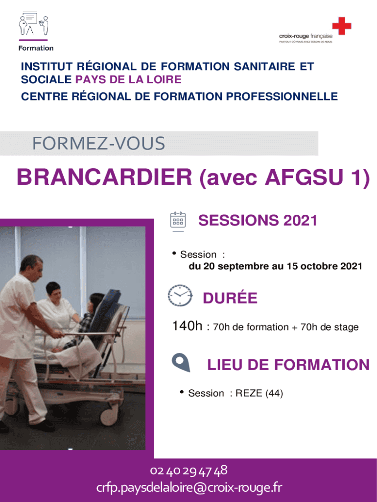 INSTITUTE REGIONAL DE FORMATION SANITARY ET SOCIAL PAYS DE LA LOIRE Center REGIONAL DE FORMATION PROFESSIONNELLEFORMEZVOUSBRANCARDIER (Alec AFG SU 1) SESSIONS 2021 Session: Du 20 September AU 15 October