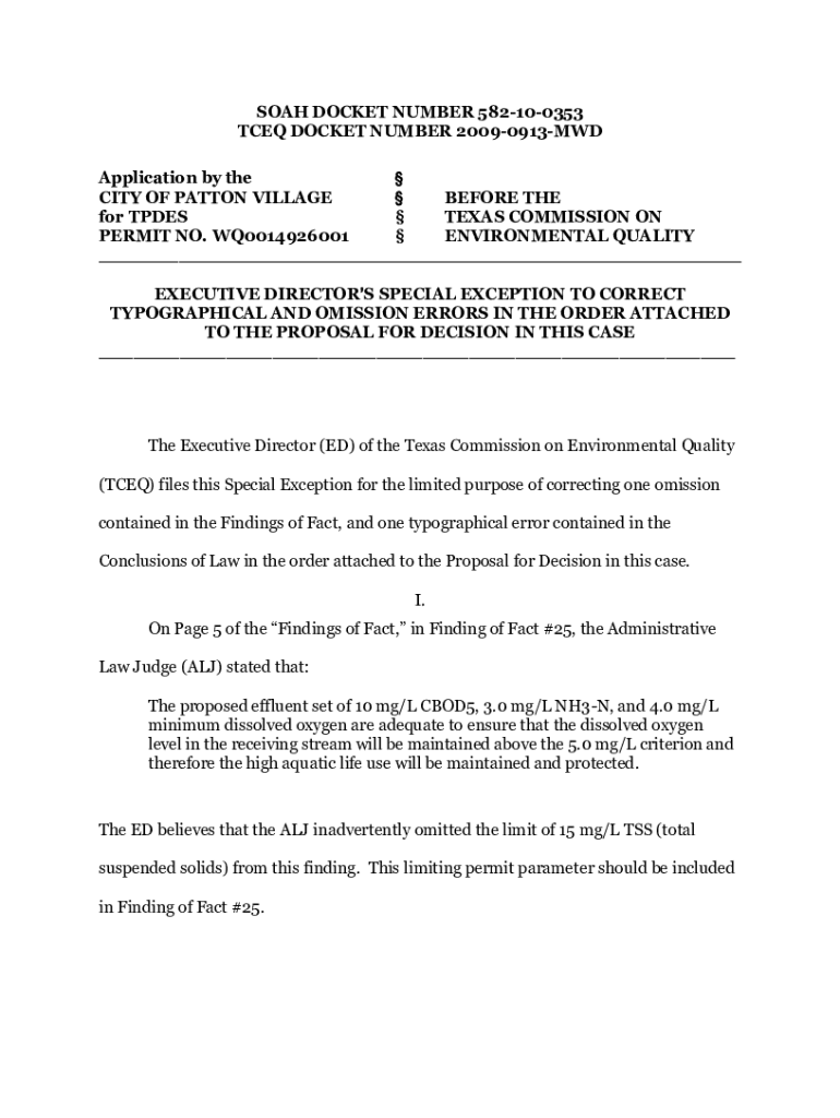 Get the free SOAH DOCKET NUMBER 582-10-0353 TCEQ DOCKET NUMBER ...