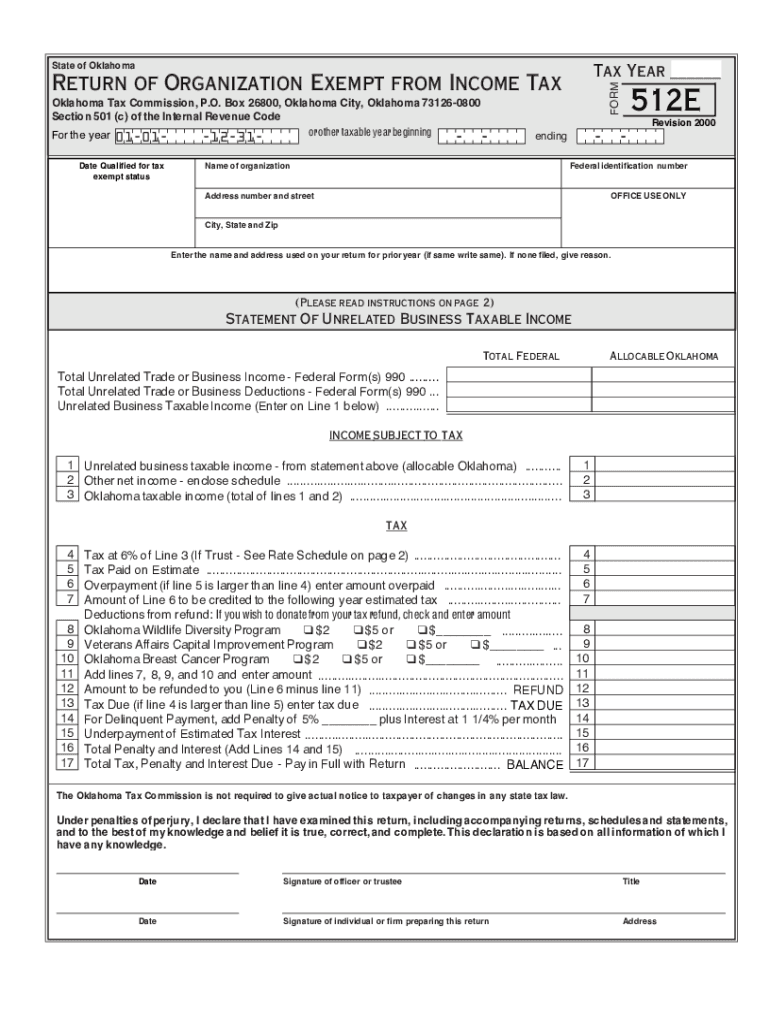 Tax Year ___State of Oklahoma Tax Commission, P.O. Box 26800, Oklahoma City, Oklahoma 731260800 Section 501 (c) of the Internal Revenue Code or other taxable year beginning For the year 01011231 Date