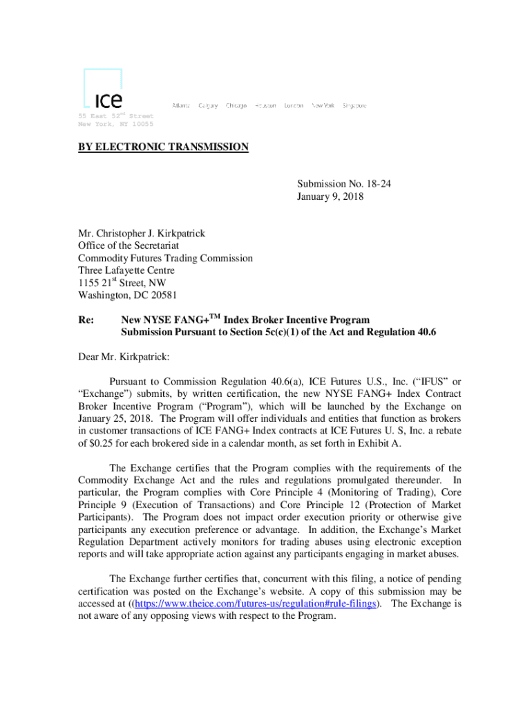 Get the free BY ELECTRONIC TRANSMISSION Submission No. 18-24 January ...
