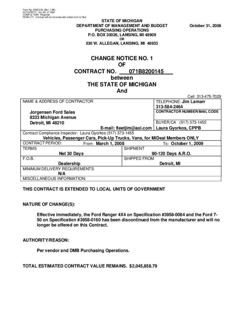 Form No. DUB 234 (Rev. 1/96) AUTHORITY: Act 431 of 1984 COMPLETION: Required PENALTY: Contract will not be executed unless form fieldstone OF MICHIGAN DEPARTMENT OF MANAGEMENT AND BUDGET PURCHASING
