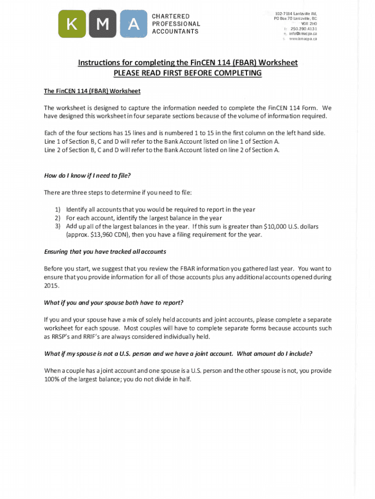 MmCHARTEREDPROFESSIONAL ACCOUNTANTS1027184 Danville Rd, PO Box 70 Danville, BC VOR 2HO I: 250.390.4131 e, info@kmacpa.ca \'.\', WW\kappacinstructionsons for completing thin CEN 11FARBAR) Worksheet