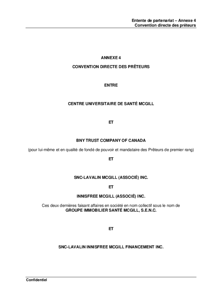 Entente de partenariat Annexed 4 Convention direct DES prteursANNEXE 4 CONVENTION DIRECT DES PRTEURSENTRECENTRE UNIVERSITIES DES ANT MCGILLETBNY TRUST COMPANY OF CANADA (pour loose ET en quality DE