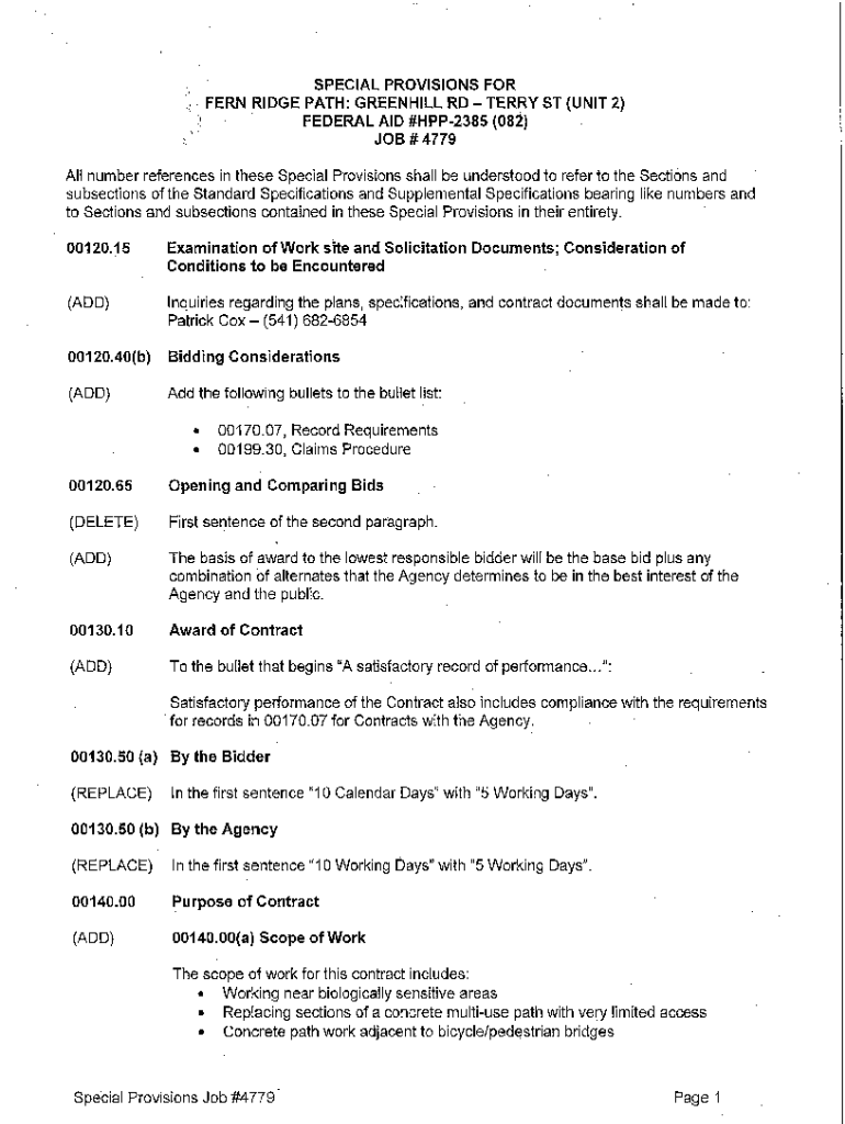 Get the free SPECIAL PROVISIONS FOR CHARNELTON ST FROM W ... - Eugene, OR