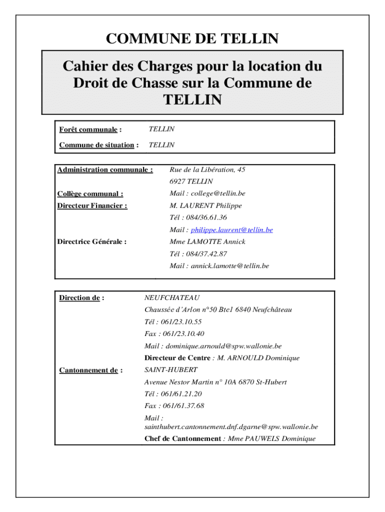 COMMUNE DE TELLING Cashier DES Charges pour la location Du Droid DE Chassé SUR la Commune de TELLING Fort communal :TELLINCommune de situation :TELLINAdministration communal :Rue de la Liberation,