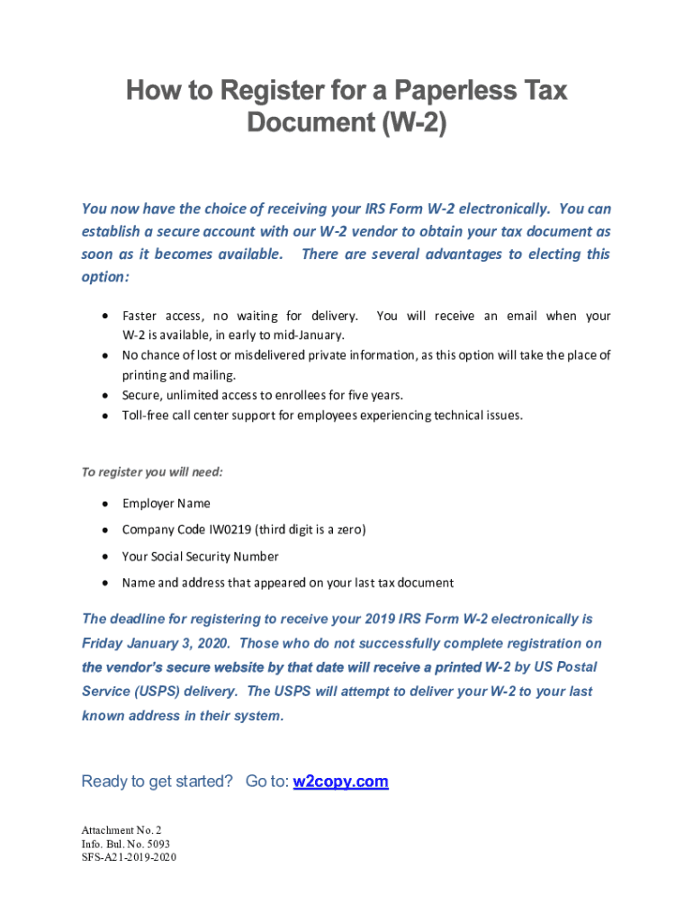 Get the free How to Register for a Paperless Tax Document (W-2)