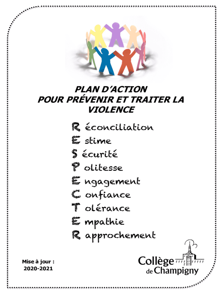 PLAN ACTION POUR PREVENT ET TRAILER LA VIOLENCE conciliation Es time S Curt Politesse Engagement C on fiancé T France E Mathis Rapprochement Mile four : 20202021Mission Du College de ChampignyLe