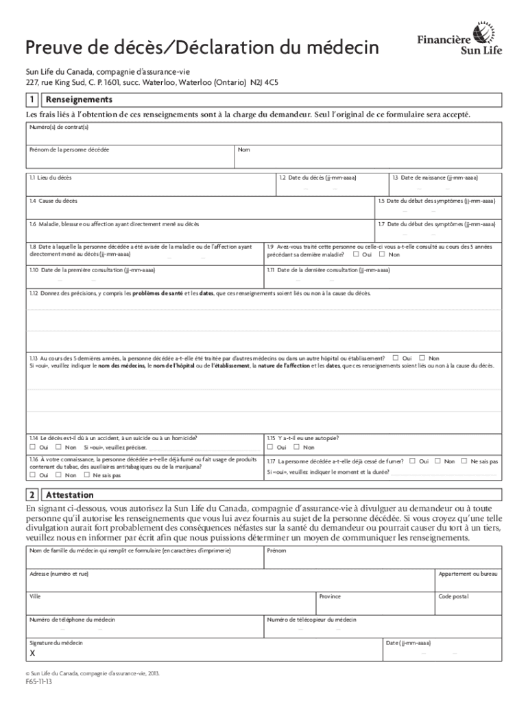 Prove de DCS/Declaration Du Devin Sun Life du Canada, companies dassurancevie 227, rue King SUD, C. P. 1601, such. Waterloo, Waterloo (Ontario) N2J 4C51RenseignementsLes fries is contention de CES