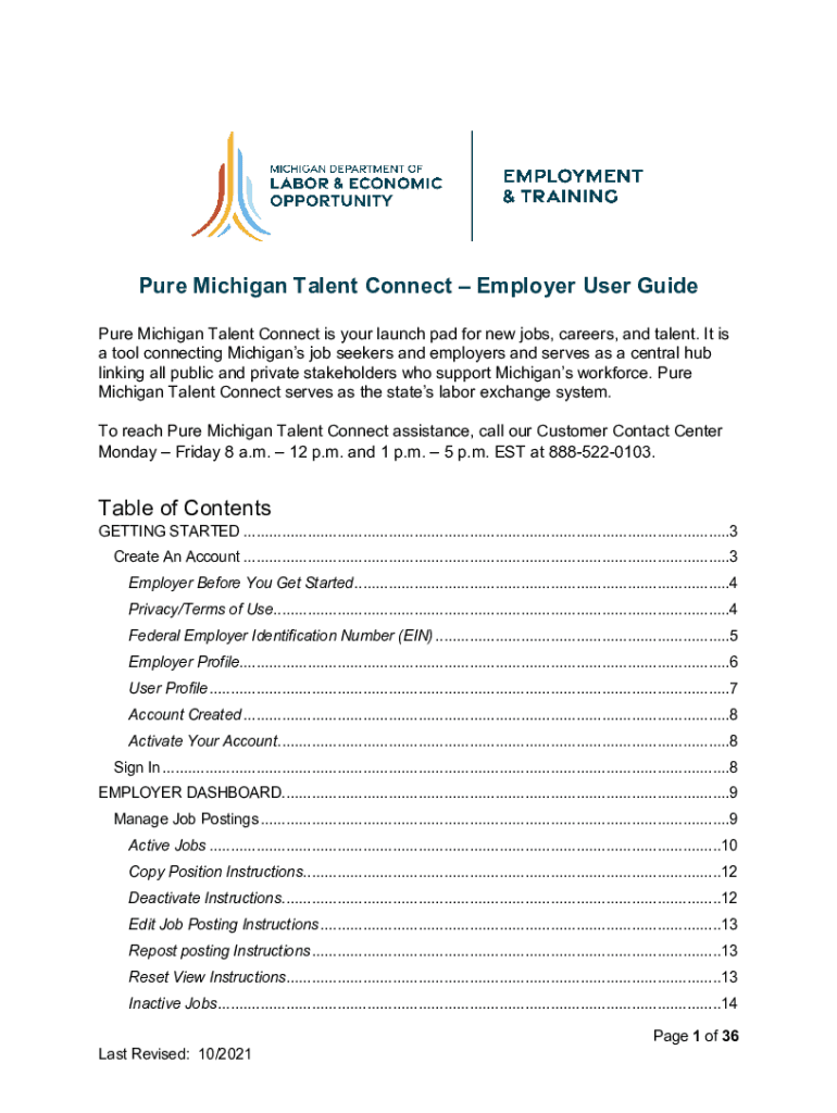 Get the free Pure Michigan Talent Connect - Employer User Guide