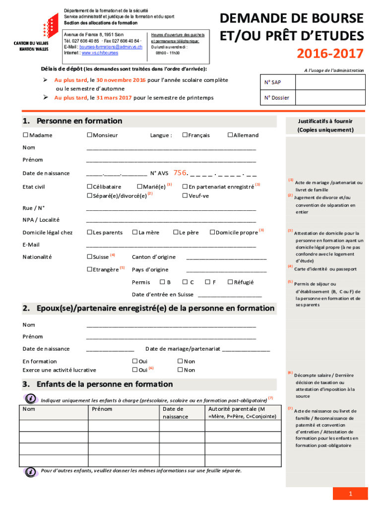 Department DE la formation et de la security Service administration ET critique DE la formation et Du sport Section DES allocations DE formation Avenue de France 8, 1951 Sion Tl. 027 606 40 85 Fax