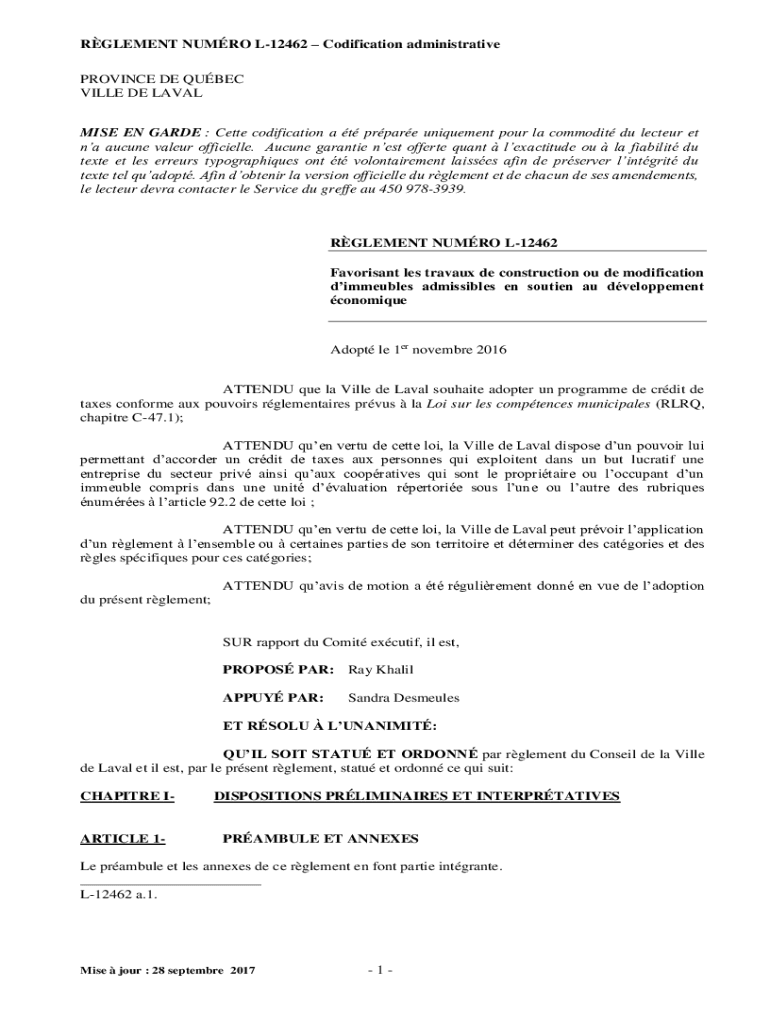 Get the free Online Rglement L-12084 - Ville de Laval Fax ...