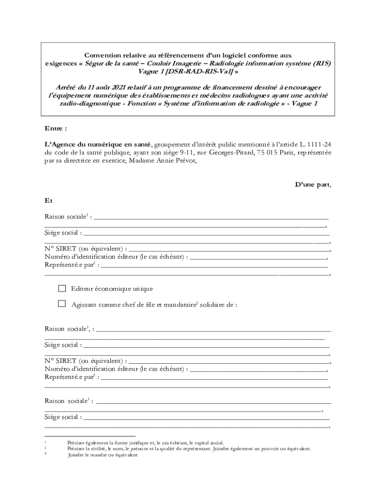 Convention relative AU Frenchmen dun logical conform aux exigences Spur DE la sent Color Imageries Radiologic information system (RIS) Vague 1 [DSRRADRISVa1] Art Du 11 AOT 2021 related UN program