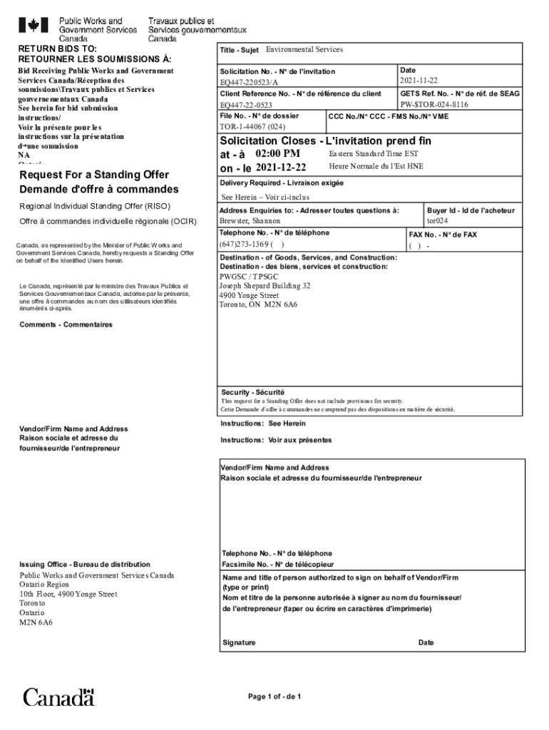 Get the free buyandsell.gc.cacdspublicRETURN BIDS TO: Title - Sujet Environmental Services ...