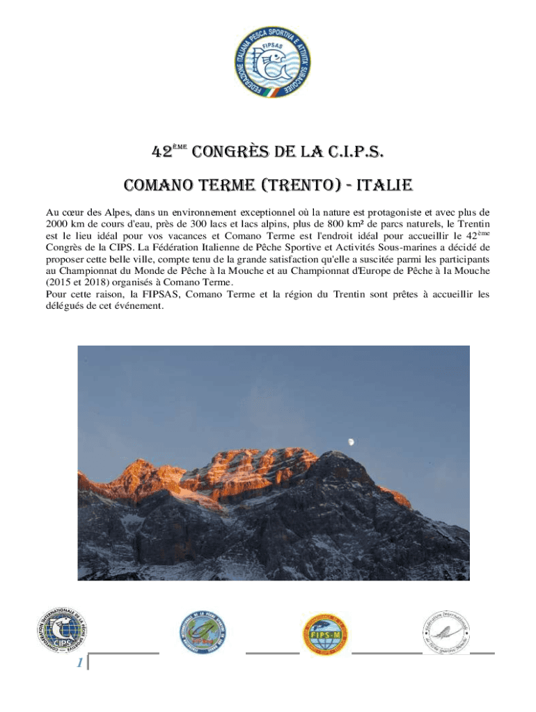 42me CONGAS DE LA C.I.P.S. ROMANO TERM (TRENT) Italic Au cur DES Alps, day sun environment exceptional o la nature est protagonist et Alec plus DE 2000 km DE course d\'EAU, PRS DE 300 lac set lack