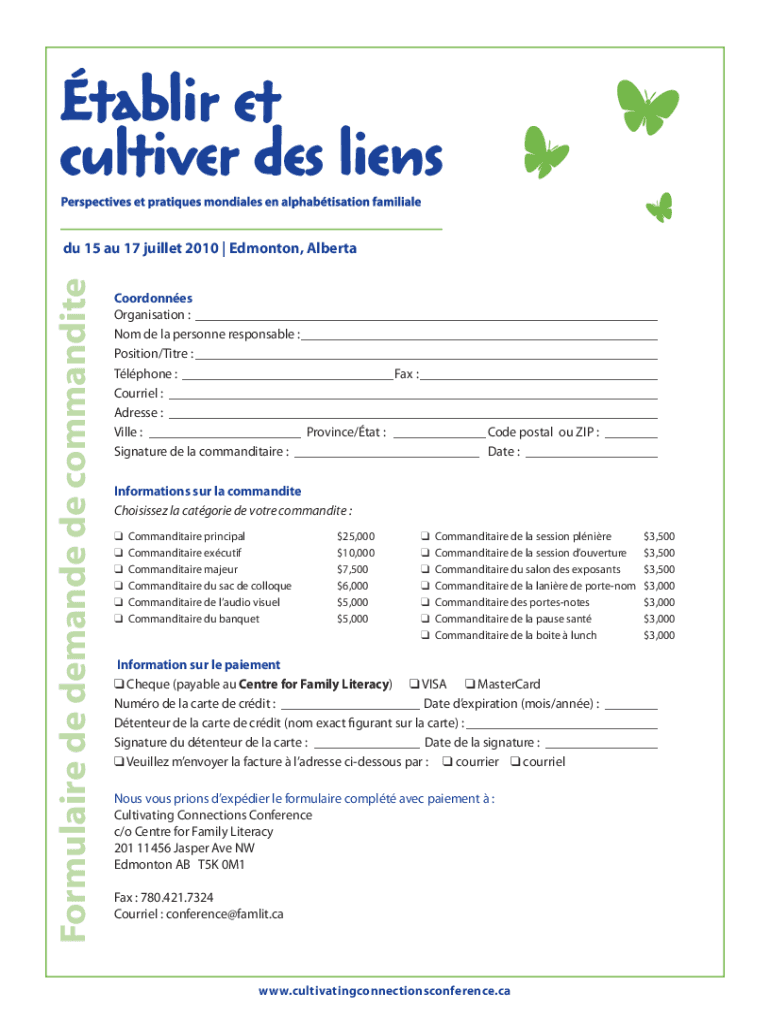 Formula ire DE demand DE commanded 15 au 17 bullets 2010 | Edmonton, Alberta Coordinates Organization : ___ Not DE la personnel responsible :___ Position/Title :___ Tl phone : ___Fax :___ Courier