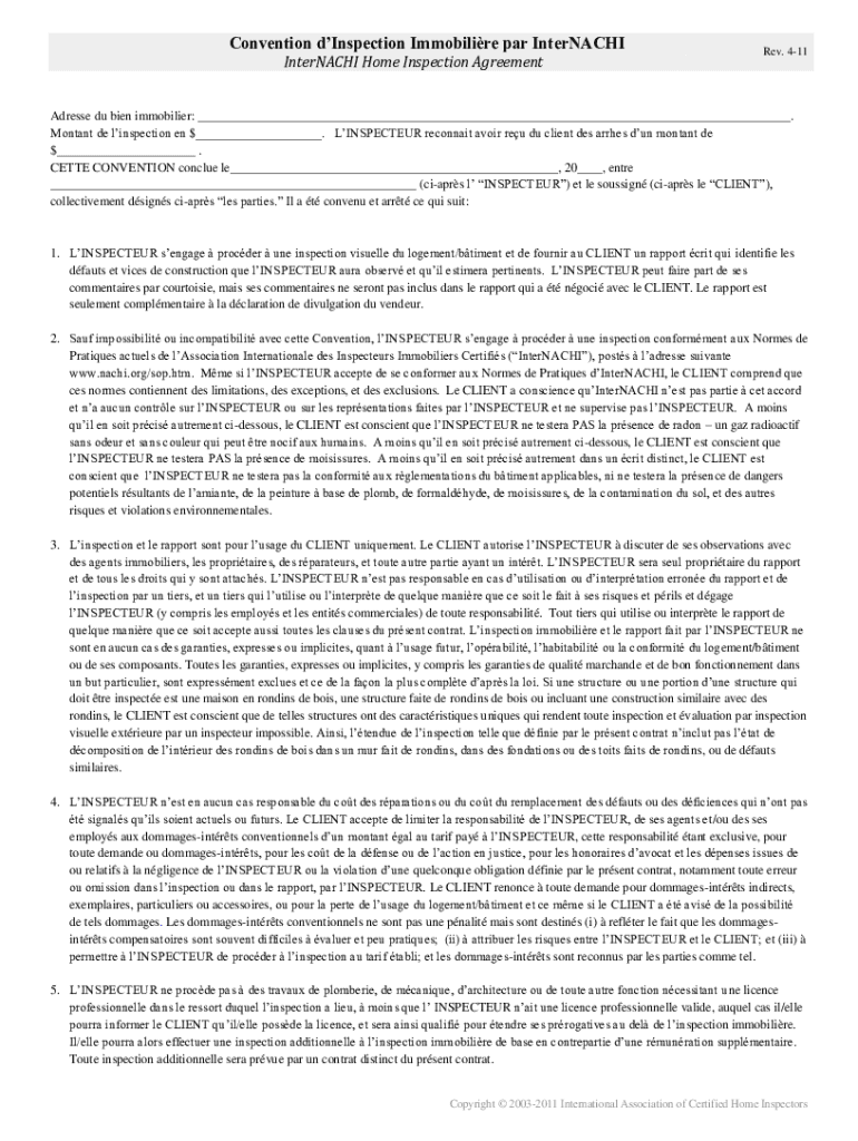 Anyone who requires a property inspection service in a French-speaking context needs the new french-language inspection agreement.