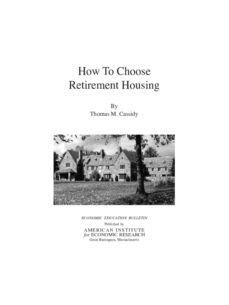 How To Choose Retirement Housing By Thomas M. CassidyECONOMIC EDUCATION BULLETINPublished American INSTITUTE for ECONOMIC RESEARCH Great Barrington, MassachusettsAbout A.I.E.R.AMERICAN Institute for