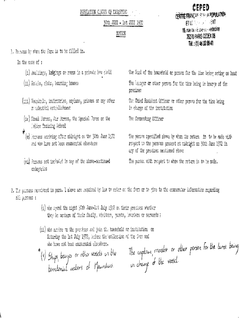 PIJ(J.LATIONCNSUSC\'EEDF l1A.URITIUSNtReFAANCA\' ET LE30th JUNE 1st JUICY 1972WhOil11F !./l Populate \', NT16, rue (JT; f\'Er.;ole\';Medicine 75270 PARIS CEDEX 06 Tl. : (1) 4d 33 99 41NOTICE 1\' l)e:\'\'Gone