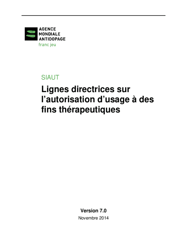 SIAUTLignes direct rices SUR authorization usage DES fins thrapeutiquesVersion 7.0 November 2014Novembre 2014 Version 7.0Table DES matures 1.0Introduction ..........................................................................................................