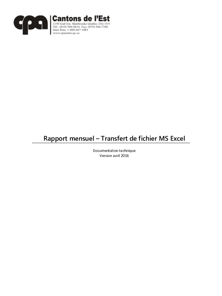 Rapport Manuel Transfer DE fishier MS Excel Documentation technique Version April 2016Rapport Manuel Transfer DE fishier MS Excel2Rapport Manuel Transfer DE fishier MS Executable DES MATURES Objectify