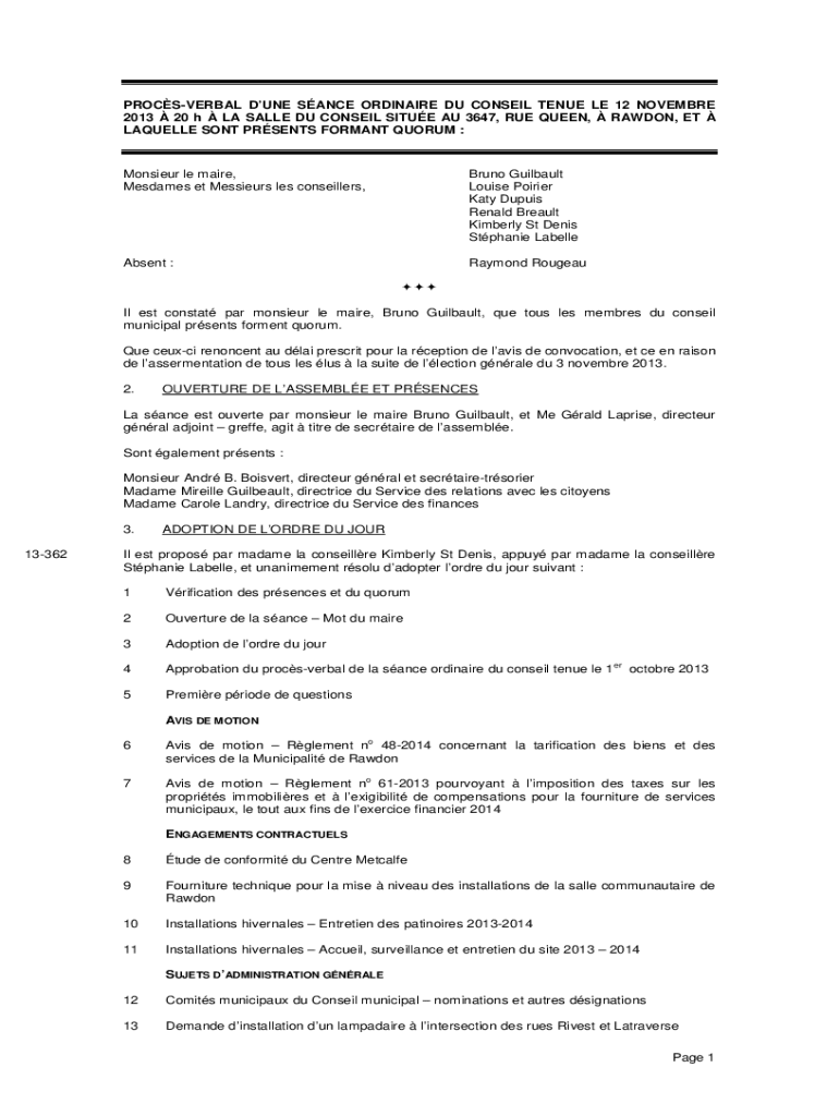 Get the free Online PROCSVERBAL MUNICIPALIT DE ...