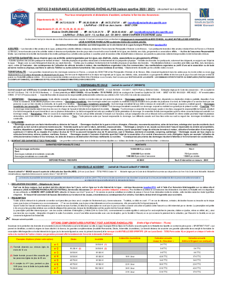 NOTICED ASSURANCE LI GUE Auvergne-Rhône-Alpes (Saigon sportive 2020 / 2021) (document non-contractual) Pour thus restatement set declarations accident, contacted LE Service DES Assurances : Apartments