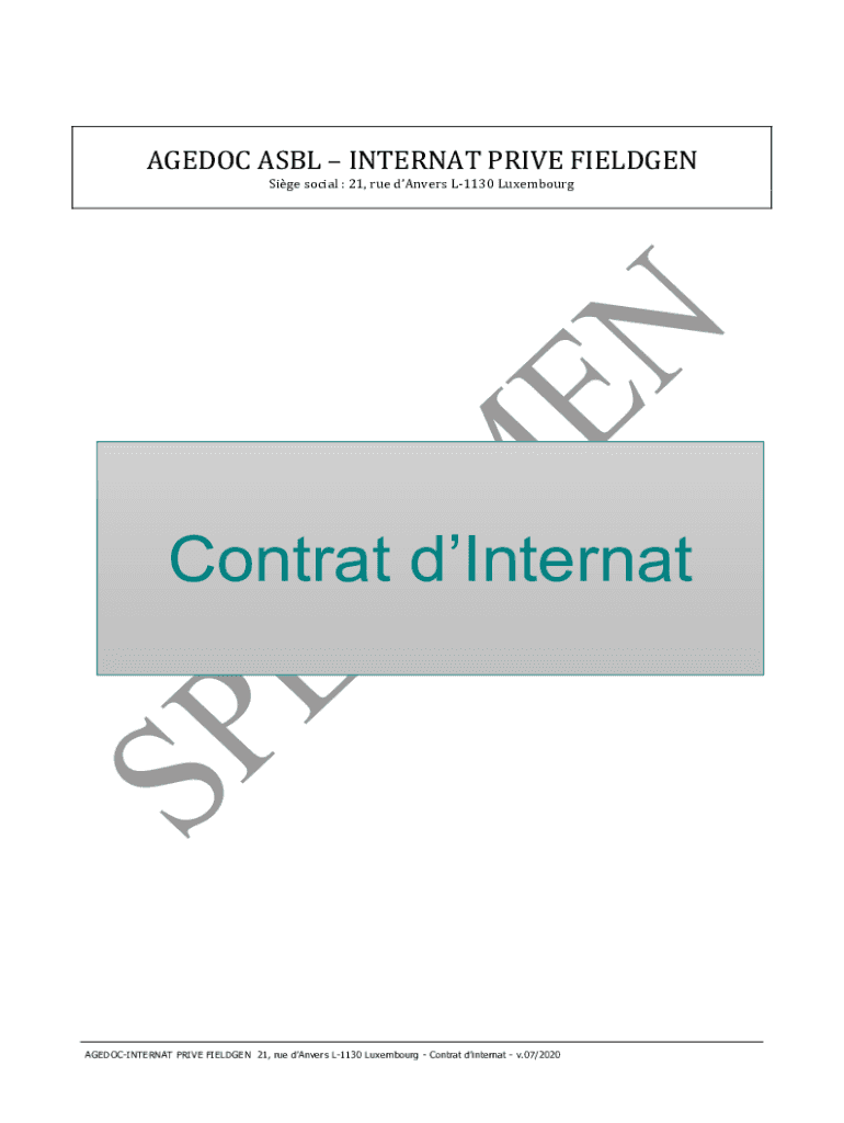 AGE DOC ASBL INTERNAL DRIVE FIELDED Side social : 21, rue dancers L1130 LuxembourgContrat dInternatAGEDOCINTERNAT DRIVE FIELDED 21, rue dancers L1130 Luxembourg Contract internal v.07/2020AGEDOCINTERNAT
