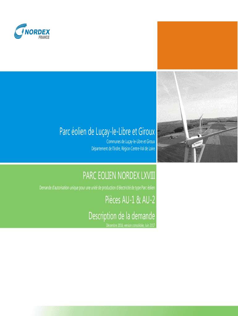 PARC alien de LuayleLibre et Giroud Communes de LuayleLibre et Giroud Department de Linde, Region Central de LoirePARC EOLIAN ORDER LXVII Demand authorization unique pour one unit DE production electricity