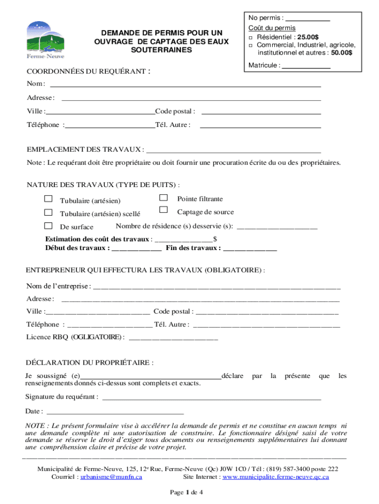 Get the free Online Demande de permis pour ouvrages de captage ...